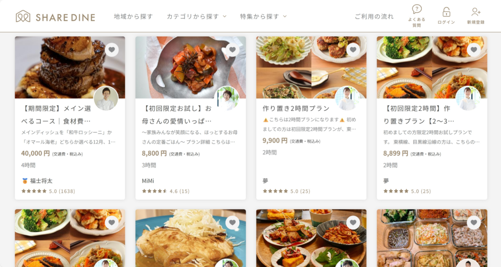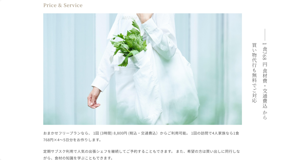 また、基本料金は「シェフの出張費(調理サービス料)」と食材費のみで、シェアダインへの支払いは基本的にサービス料金だけとなっています。