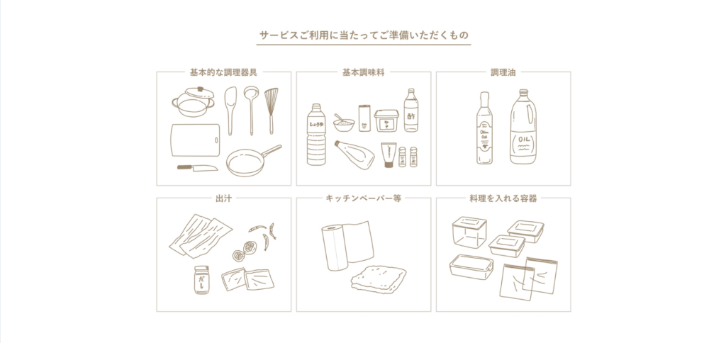 当日は、ユーザー宅のキッチンを使って約3時間で10〜12品前後の作り置きやイベント料理をまとめて調理します。